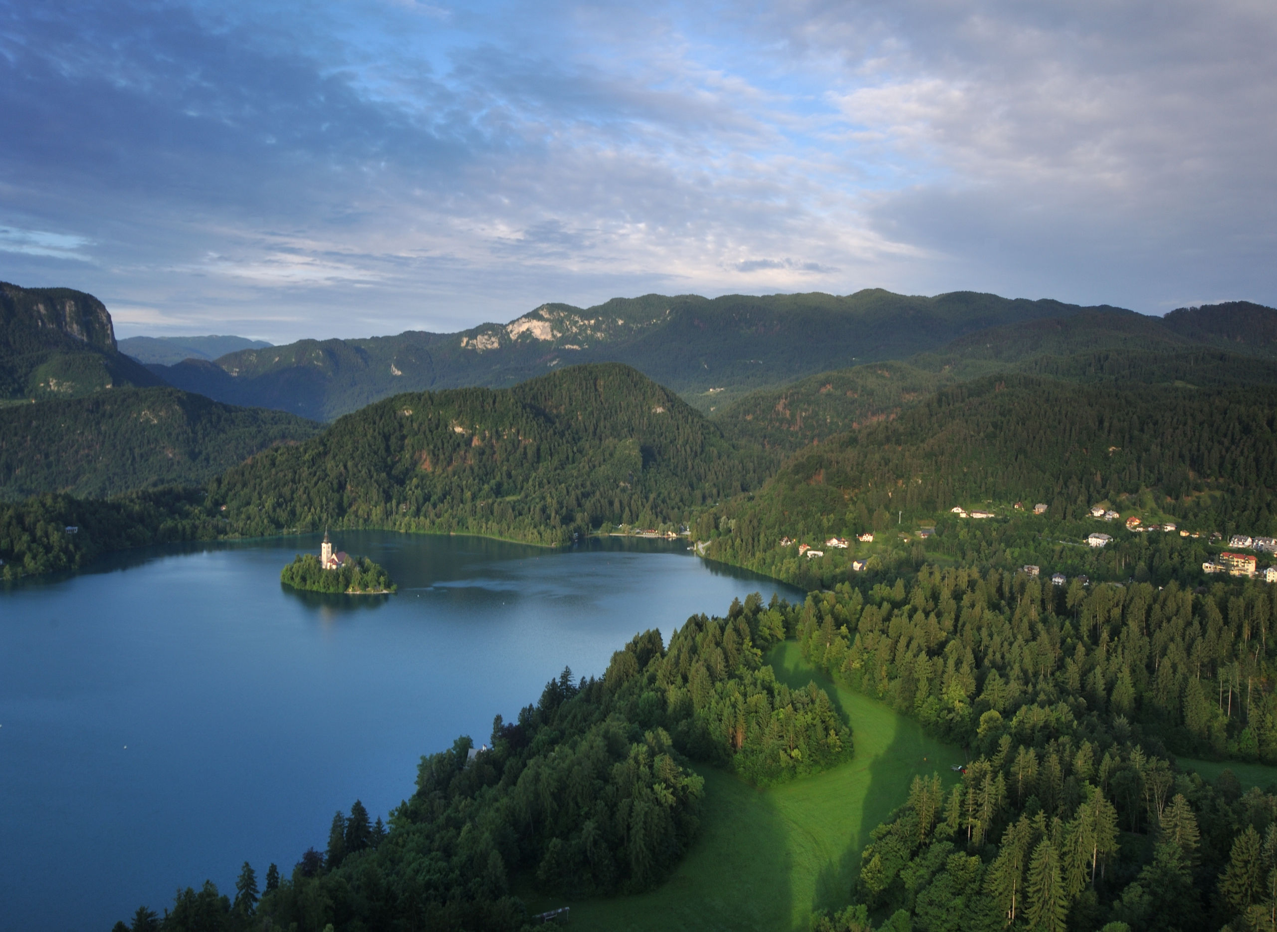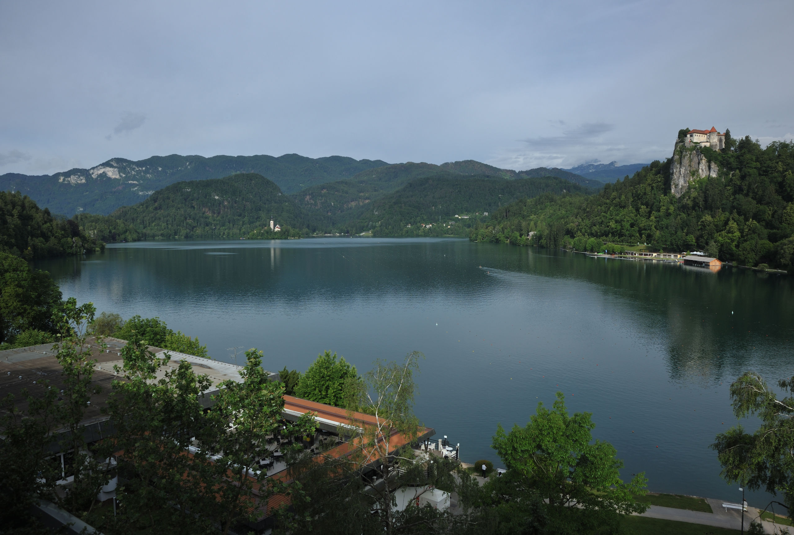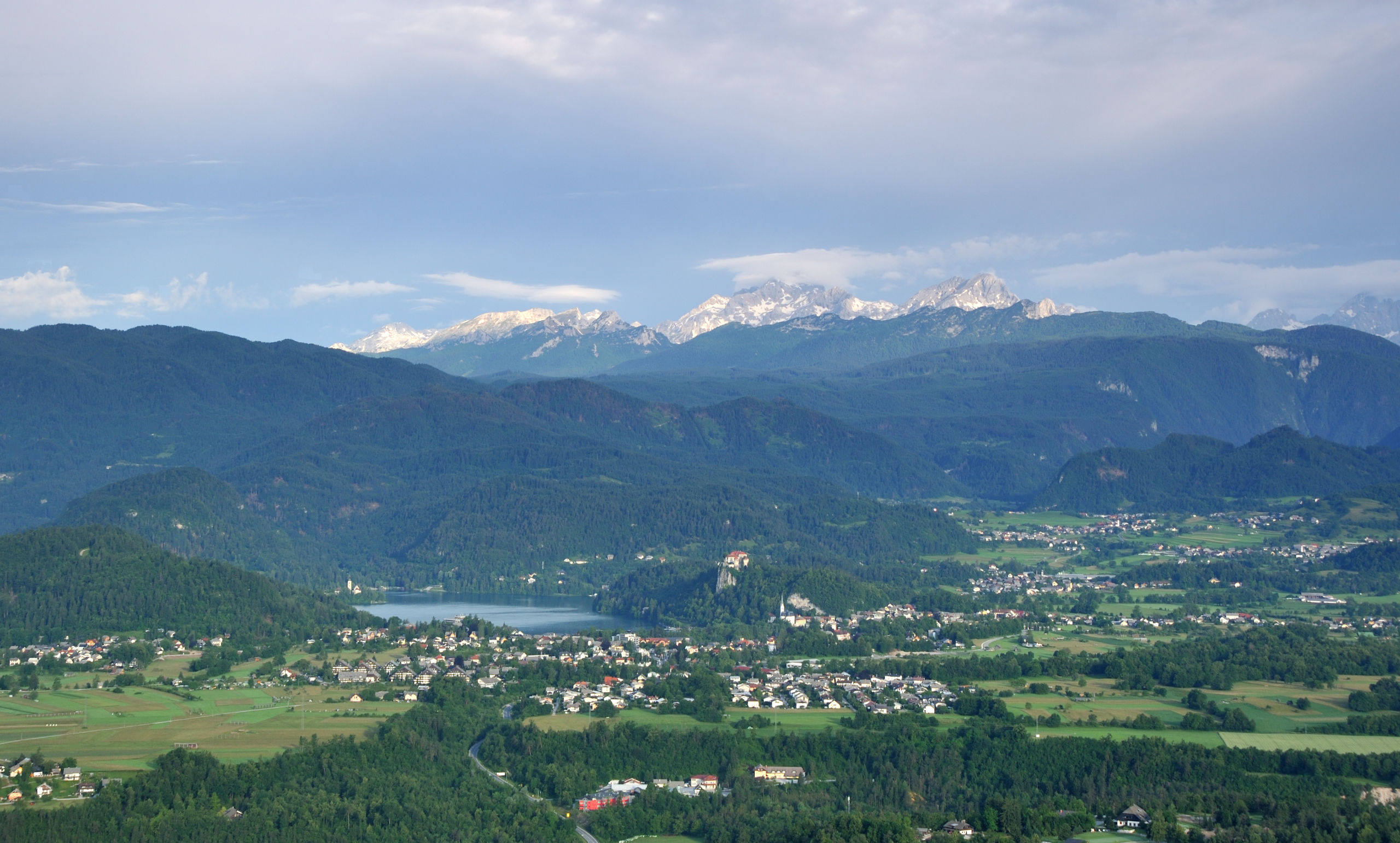 Небольшое (2.1×1.4 км) Бледское озеро — один из символов Словении: главным образом, благодаря острову с церквушкой, растиражированному на открытках и сувенирах. На его берегах летом многолюдно: на южном его берегу расположен город Блед с немеренным количеством отелей. Всего я побывал в этом месте два раза: в 2014 и 16 гг, оба раза в июне. В первый раз только съездил сюда днём, посетив Бледский замок, что возвышается на скале над северным берегом озера. Во второй раз более основательно: слетал на рассвете на воздушном шаре, сходил на окрестные вершинки.