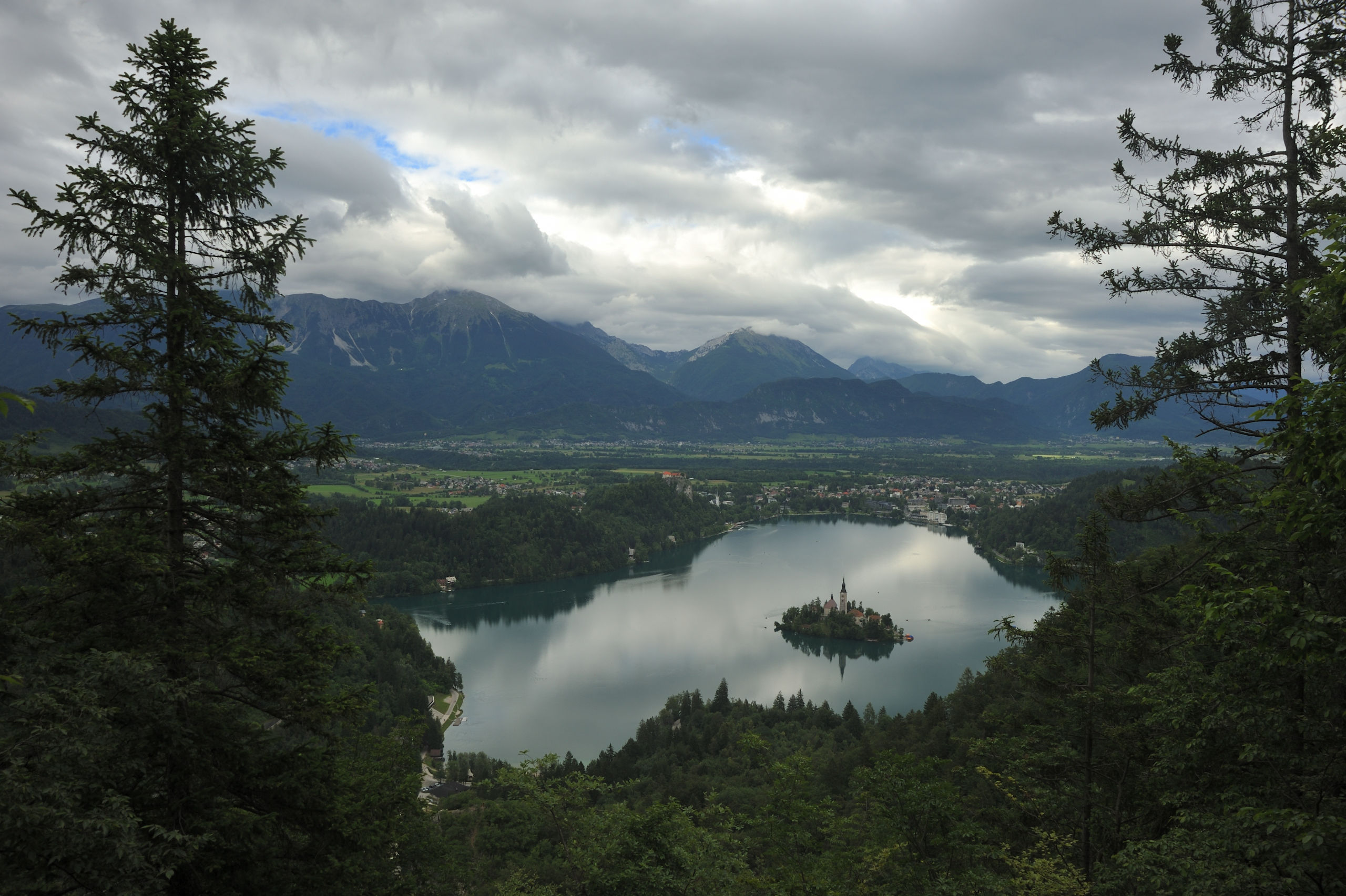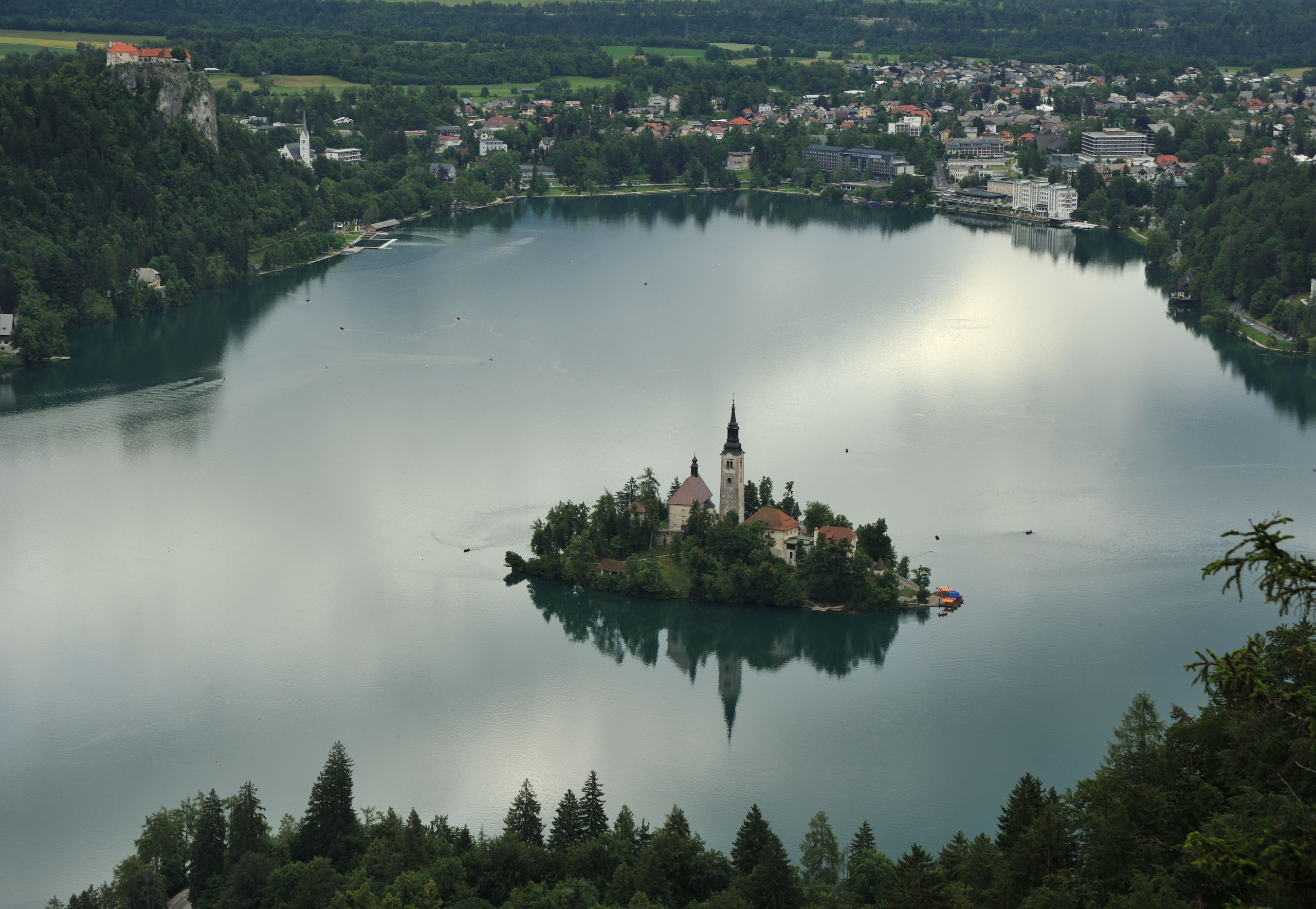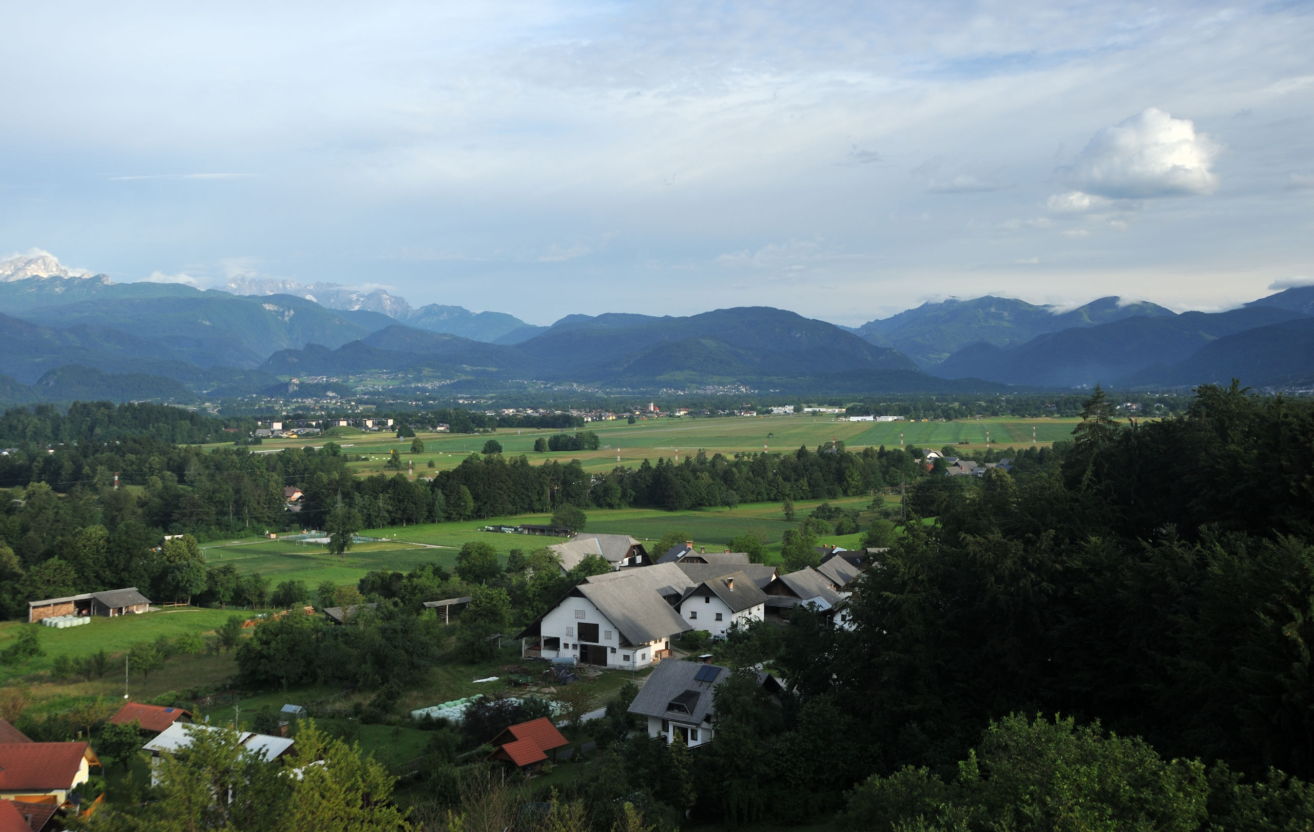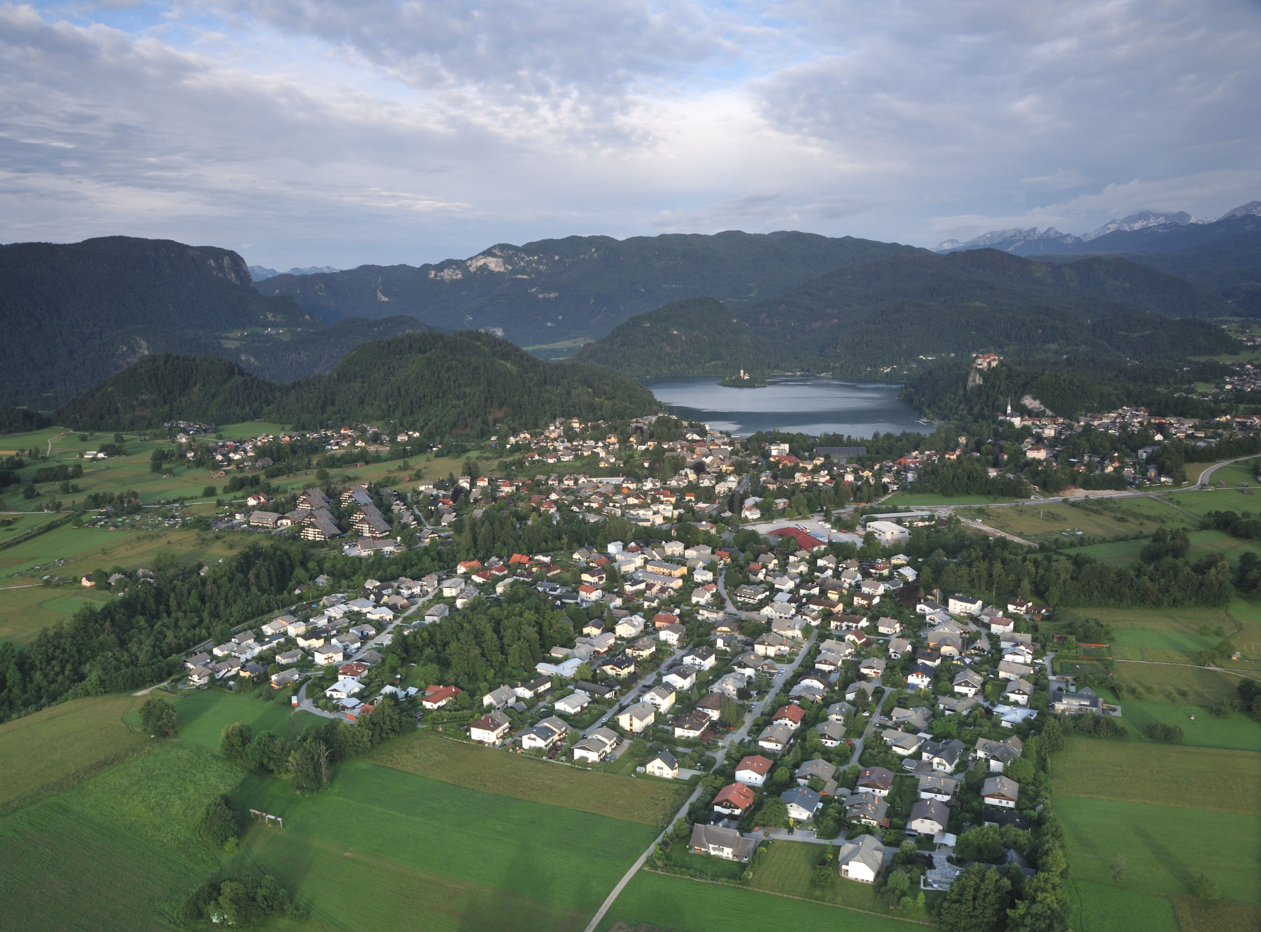 Небольшое (2.1×1.4 км) Бледское озеро — один из символов Словении: главным образом, благодаря острову с церквушкой, растиражированному на открытках и сувенирах. На его берегах летом многолюдно: на южном его берегу расположен город Блед с немеренным количеством отелей. Всего я побывал в этом месте два раза: в 2014 и 16 гг, оба раза в июне. В первый раз только съездил сюда днём, посетив Бледский замок, что возвышается на скале над северным берегом озера. Во второй раз более основательно: слетал на рассвете на воздушном шаре, сходил на окрестные вершинки.