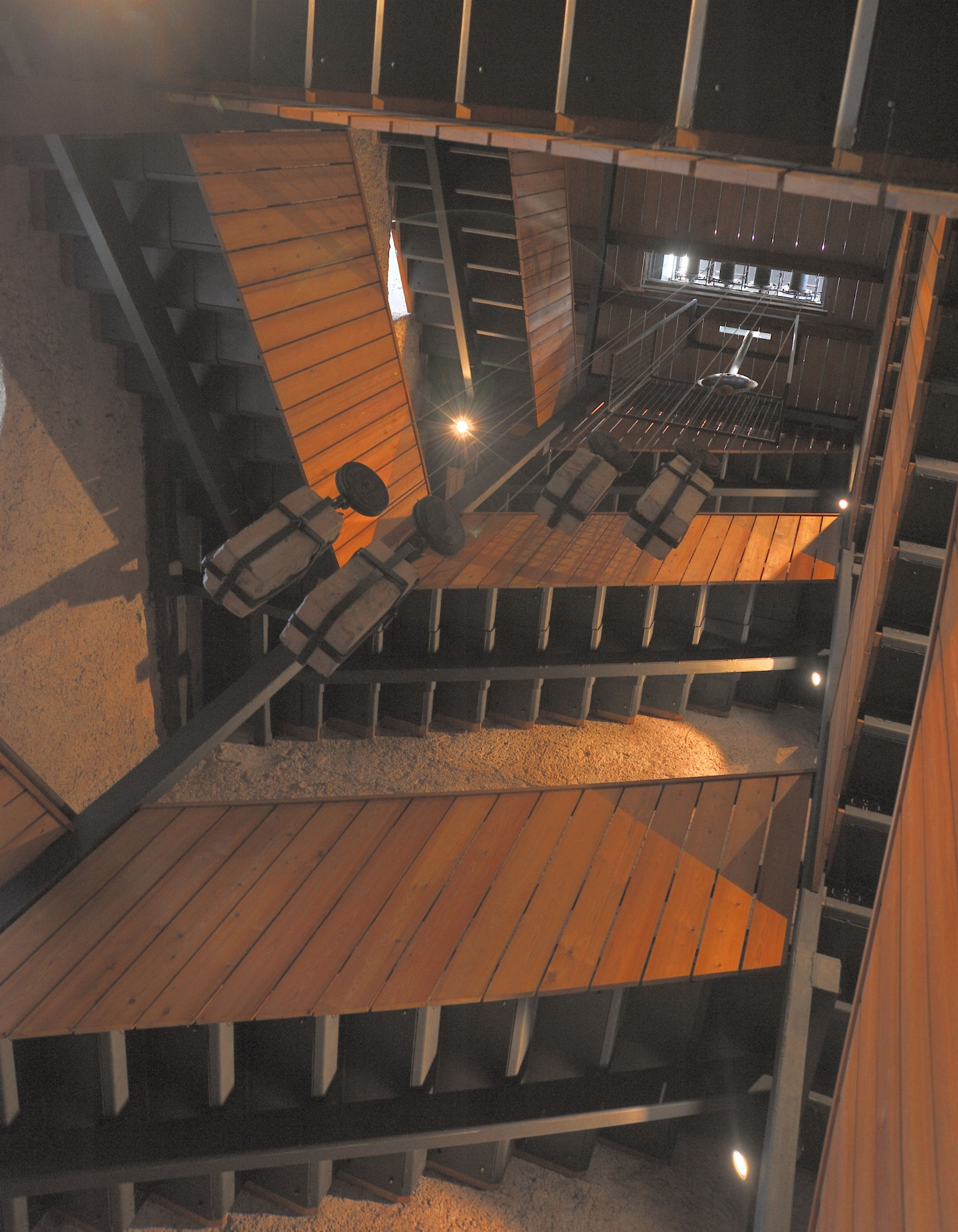 Делать это никому не советую: в церкви смотреть нечего, а на колокольне оконные проёмы забраны сеткой, через которую фиг чего сфотографируешь. Непонятно, зачем это, ведь решётки на окнах тоже есть! Внутри колокольни наверх ведёт винтовая лестница.