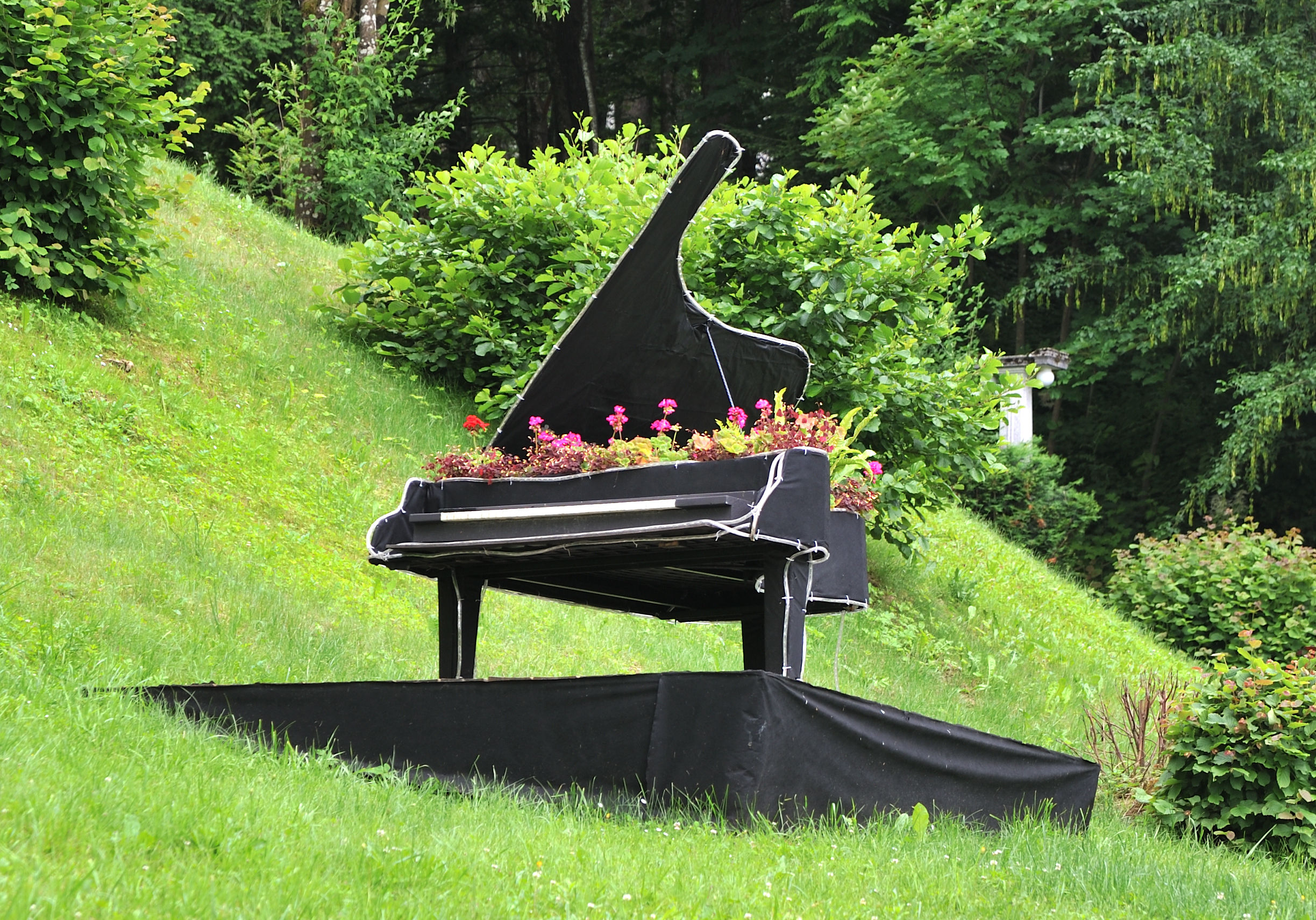 Озеро со всех сторон окружено горами, заросшими лесом с проплешинами лыжных трасс.