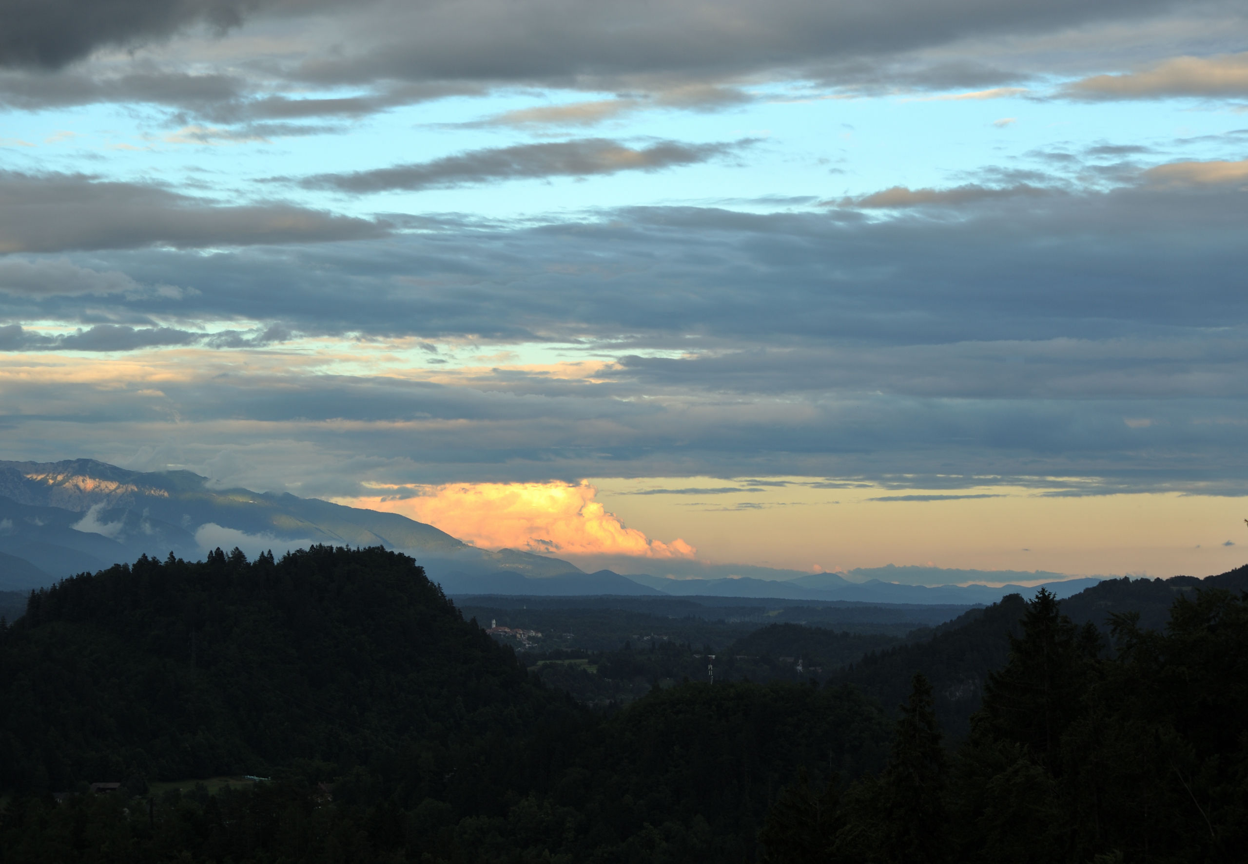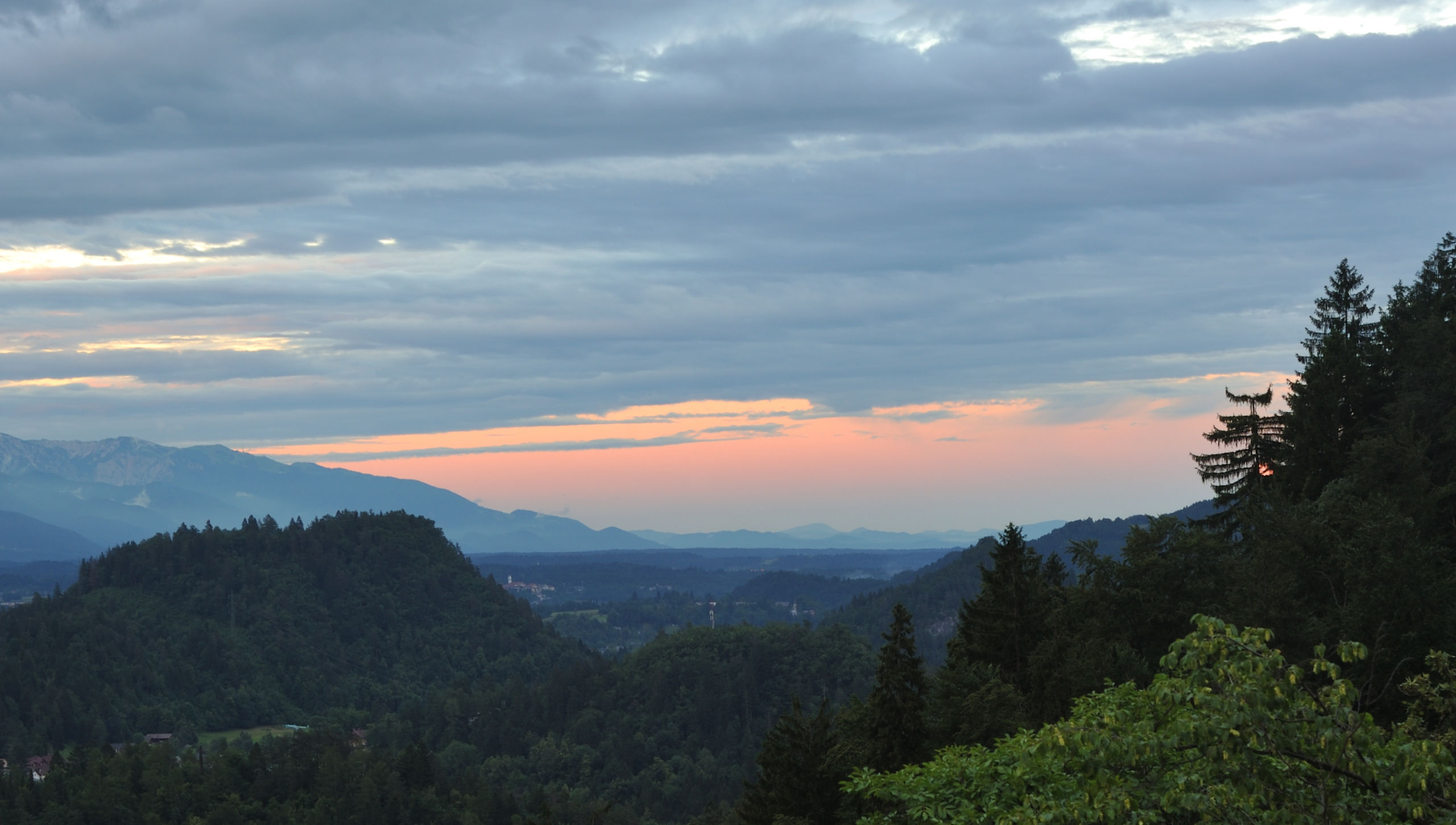 И напоследок немного вечерних видов с пары вершинок к юго-западу от озера: Ojstrica и Velika Osojnica. Ojstrica находится ближе, и на ней стоит скамейка, на которой можно посидеть-помедитировать. Поэтому это очень популярное, проходное место.